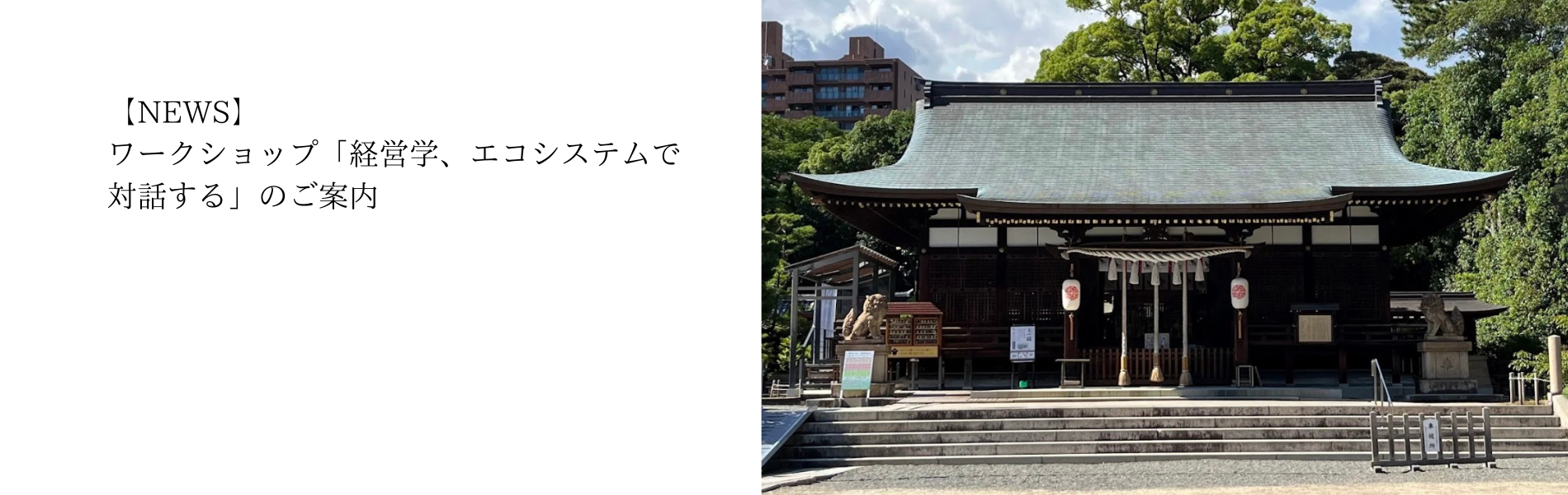 - ワークショップ「経営学、エコシステムで対話する」のご案内12月20日(土)11時から、神戸市東灘区にございます弓弦羽神社にて、ワークショップ「経営学、エコシステムで対… 続きを読む: ワークショップ「経営学、エコシステムで対話する」のご案内